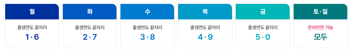 세대주 출생년도 끝자리 기준 요일별 5부제 적용 <2023.02.15(수)~2023.03.08(수)>