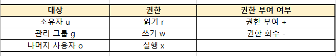 여기서 [권한] : 권한을 입력할 때에는 심볼릭 모드와 8진수 모드 2가지 방식을 이용하여 입력이 가능합니다.